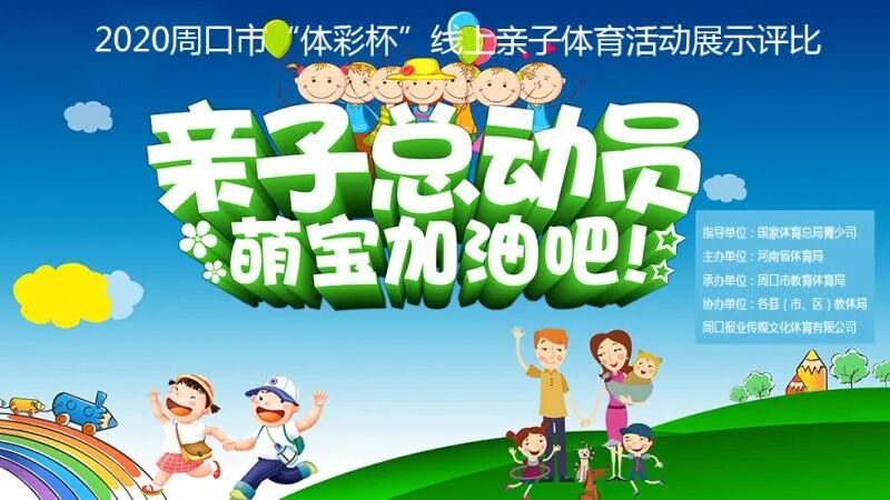 为贯御落实《体育强国建设纲要》,在国家体育总局青少司的指导支持下,着力推进我市青少年儿童和家长喜闻乐见的亲子体育活动,营造支持青少年参与体育锻炼的家庭氛围, 促进青少年身心健康、全面发展。结合疫情防控相关要求,决定开展“2020年周口市“体彩杯”线上亲子体育活动展示评比”活动。以更加科学化、现代化的方式引导更多青少年儿童参与体育锻炼,让他们掌握运动技能,养成运动习惯。
