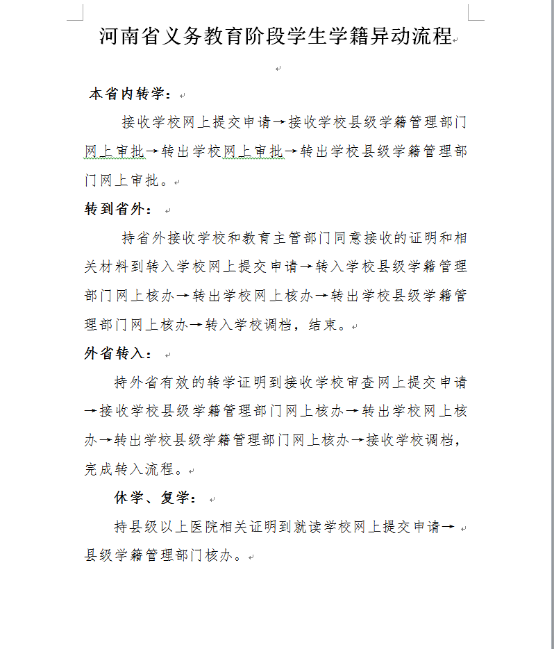 河南省义务教育阶段学生学籍异动流程